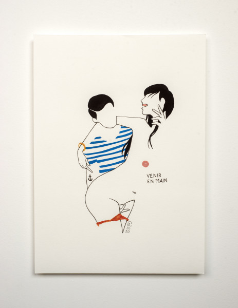 Encre et gouache sur papier, signée et datée en bas au centre